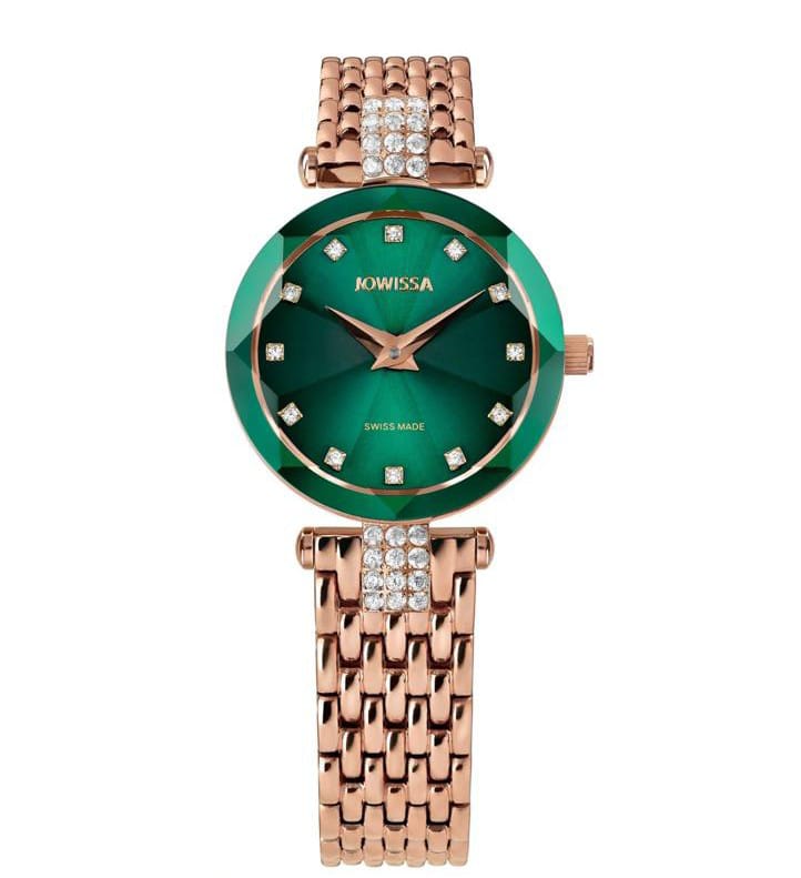 Facet Strass Swiss Ladies Watch – M (Rose Gold/Green)