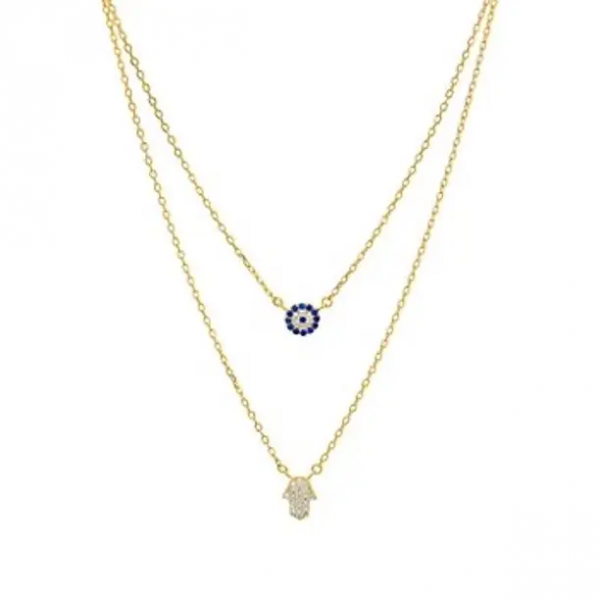 £120.0014k Gold Plated Greek Evil Eye Pendant Chain Necklace 18 Inches