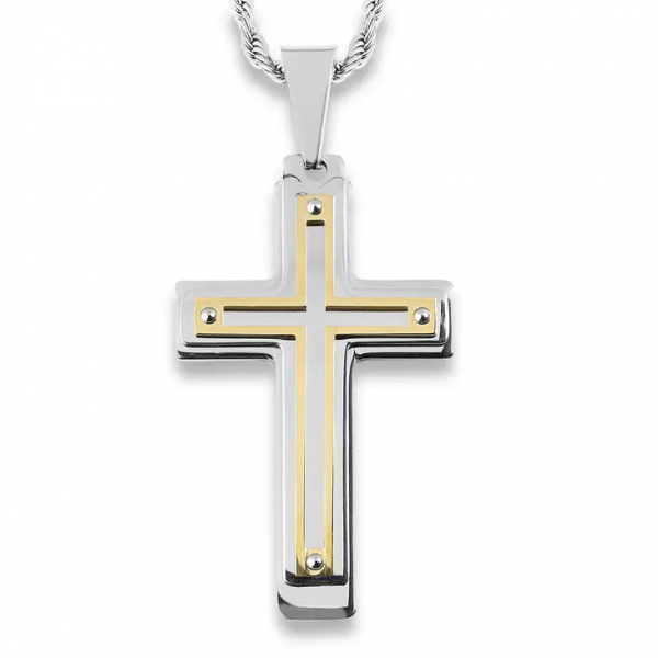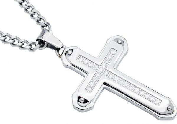 £90.00Men’s Stainless Steel Cross Pendant Necklace with Cubic Zirconia